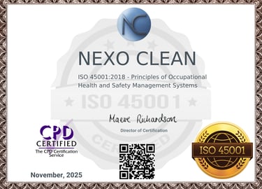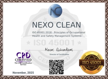 “Nuestras certificaciones, que incluyen OSHA General Industry, HAZCOM y HAZWOPER, y la norma internacional ISO 45001 y mas certificaciones , reflejan nuestro compromiso absoluto con la seguridad y la excelencia operativa. Gracias a estos estándares, garantizamos procesos totalmente seguros y eficientes, protegiendo tanto a nuestro equipo como a nuestros clientes. Al elegirnos, no solo recibes un servicio profesional de limpieza, sino también la tranquilidad de trabajar con un proveedor certificado y confiable en cada proyecto.”